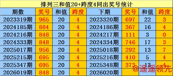 上期回顾:排列三第2026019期奖号:848。和值20,跨度4。