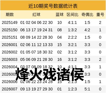 其中红球三区比为1:2:3,奇偶比为5:1,重号未出现,蓝球出现时第1区。